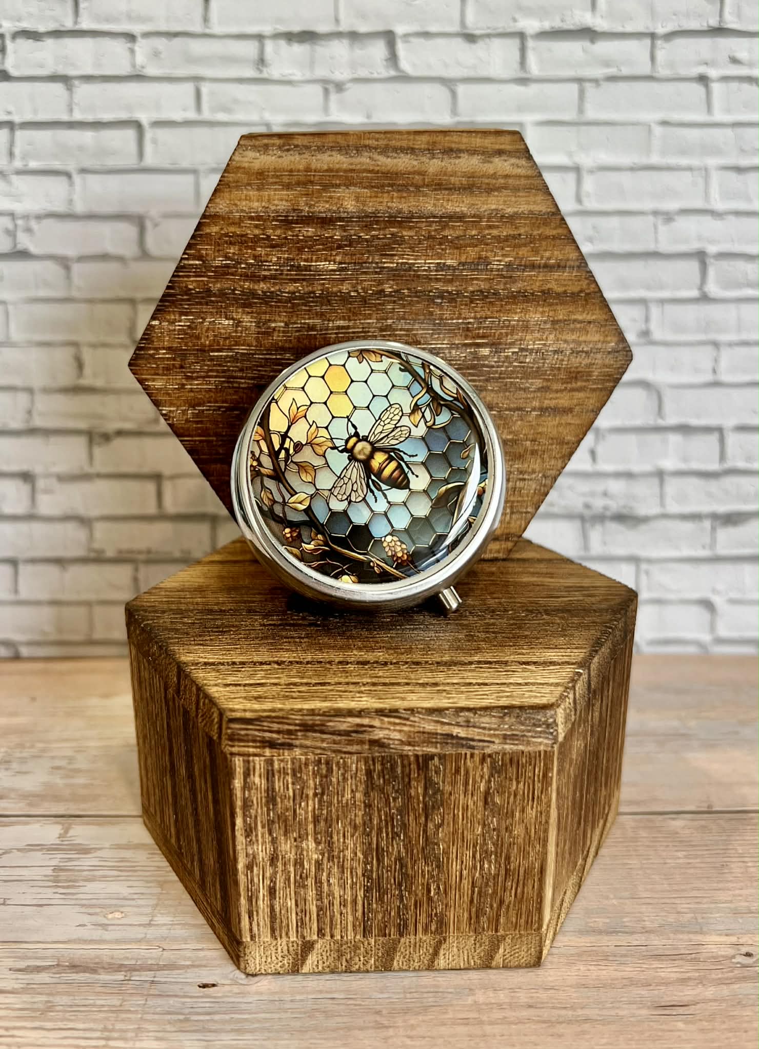 These little boxes are super cute! Store tiny treasures in their divided compartments, or vitamins or pills. Square: Approx. 2.5″ X 1.5″ with two divided compartments. Round: Approx. 2″ diameter with three divided compartments.
